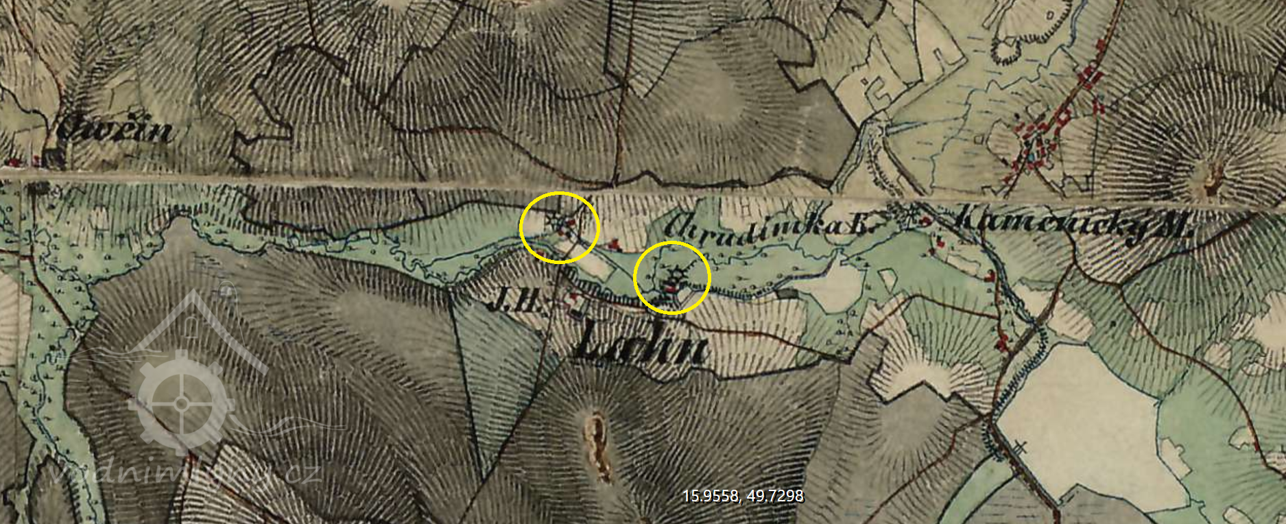 Popis1930: 1 kolo na svrchní vodu, hltnost 0,107 m3/s, spád 2,9 m, výkon 3,3 HP