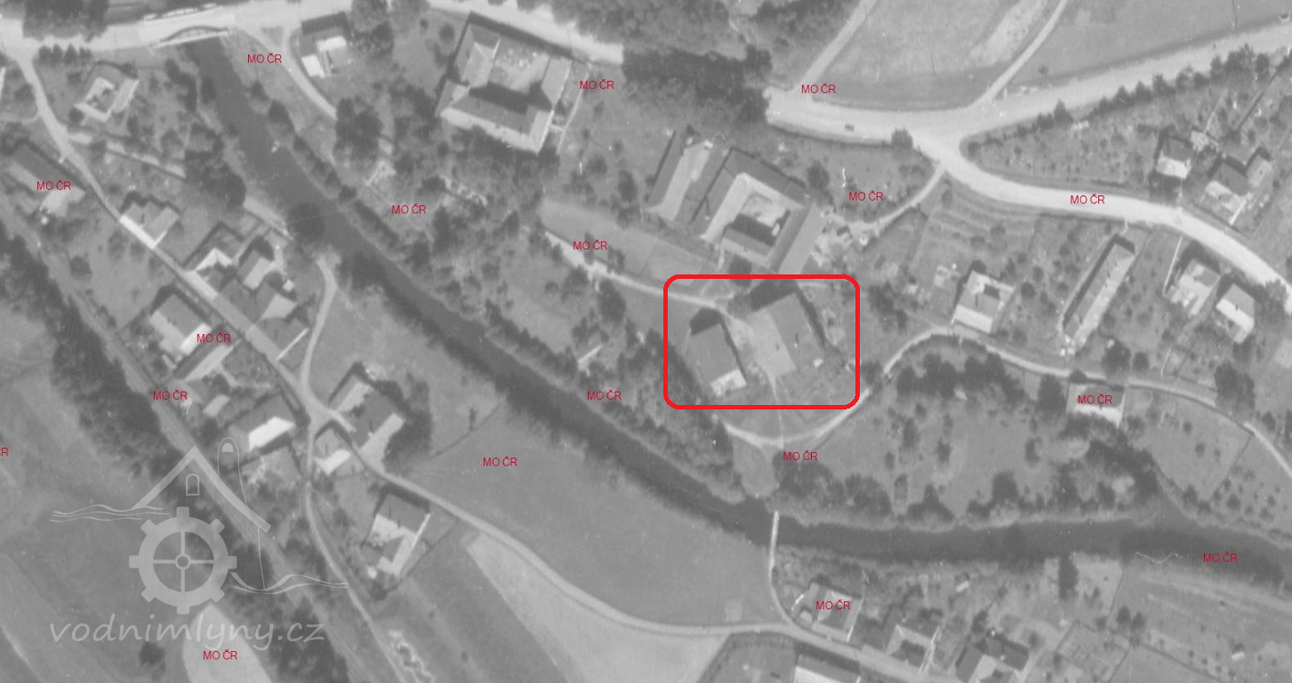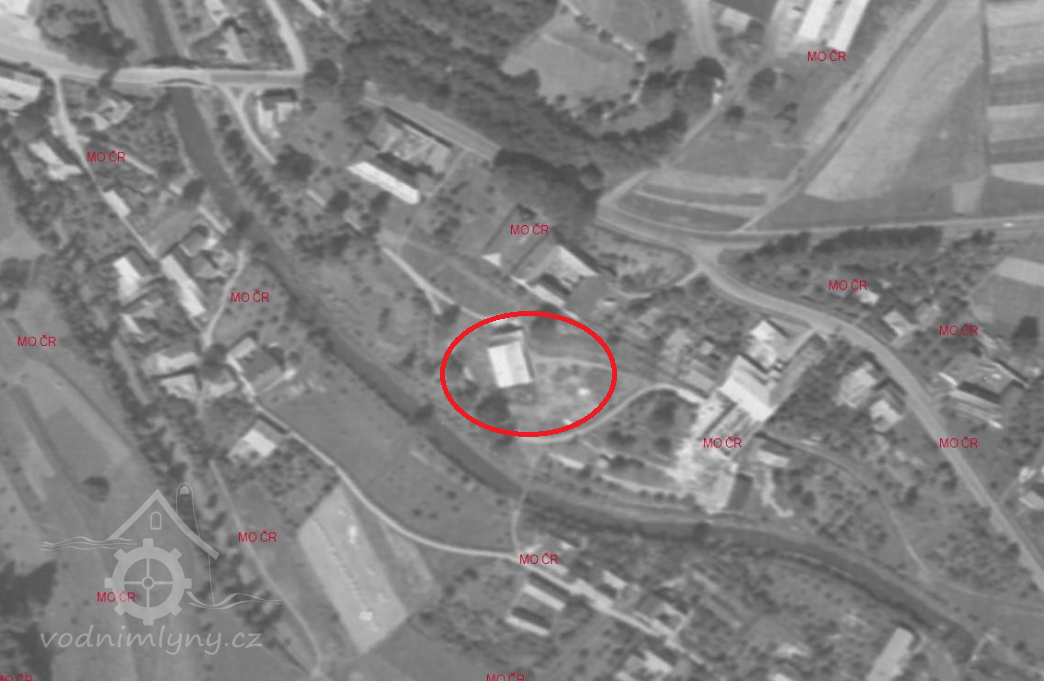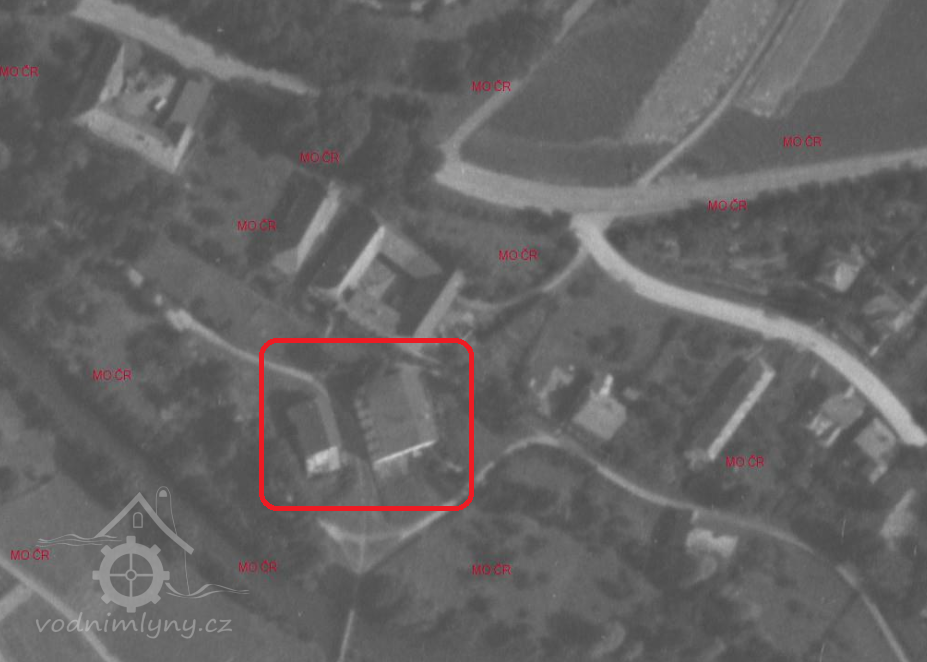 Mlýn stál ještě 1950, 1954 již ve zříceninách.