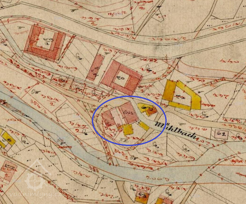 Popis1930: 2 kola na svrchní vodu, hltnost 0,3 a 0,36 m3/s, spád obou 2,6 m, celkový výkon 14,8 HP