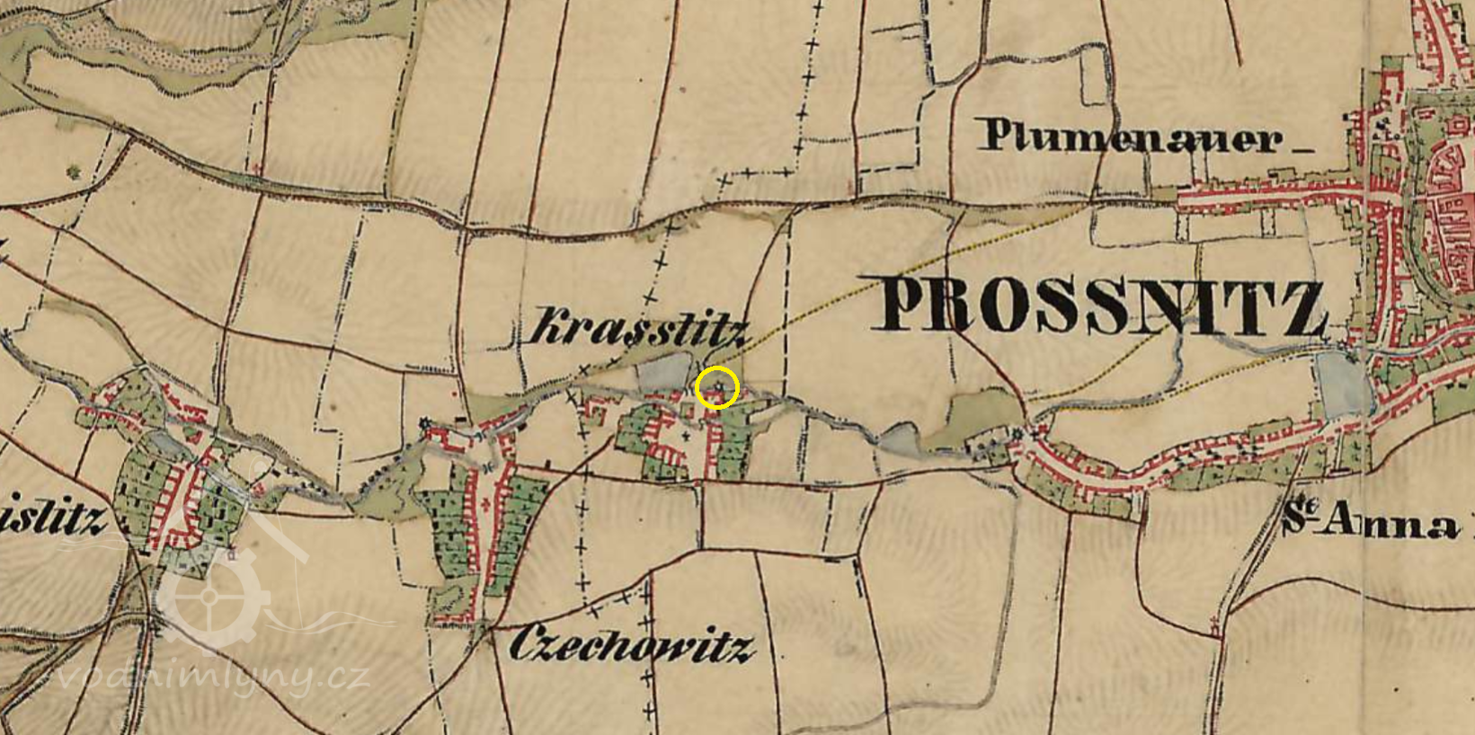 V roce 1896 adaptovala prostějovská kancelář Konečný & Nedělník mlýn na tkalcovnu hedvábných látek vídeňské firmy Jos. Herzig & Comp., vybavení dodala krnovská strojírna A. Hohlbaum & Co. V roce 1915 tkalcovnu koupila prostějovská firma na houněnou obuv Wolf & Franže, a během dvou let zde dala přistavět přádelnu s mykárnou a barevnou. Podnik tak měl zajištěnou i vlastní výrobu materiálů. Všechny budovy navrhli opět Konečný s Nedělníkem, kotel dodala prostějovská strojírna Wichterle a Kovářík, 32 metrů vysoký komín postavilo specializované podnikatelství Ant. Dvořák & K. Fischer z Letek. Po krachu firmy v roce 1933 byla výroba přenesena do Baťových závodů ve Zlíně. Baťův záměr vybudovat v Krasicích velkou pobočku nebyl nakonec realizován. Po druhé světové válce areál získal n. p. Kotva a v roce 1951 n. p. Gala, jenž se zaměřil na výrobu sportovních potřeb – míčů, rukavic, batohů, kabel a dalšího vybavení. V roce 1975 byla dokončena nová pětipodlažní budova (parcela 59/6), navržená roku 1968 zlínským Centroprojektem ve spolupráci s Hutním projektem Veselí nad Moravou. Podnik je stále v provozu.