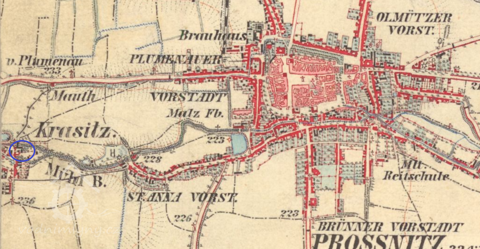 200 m sv od kostela sv. Josefa v Prostějově-Krasicích