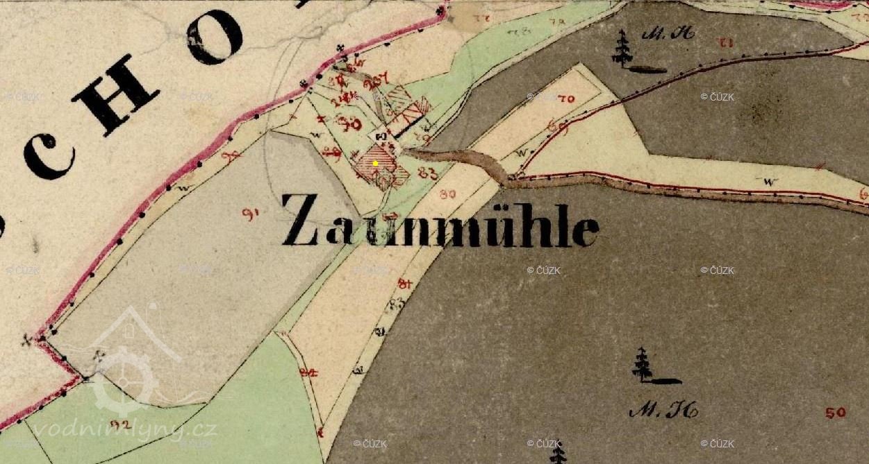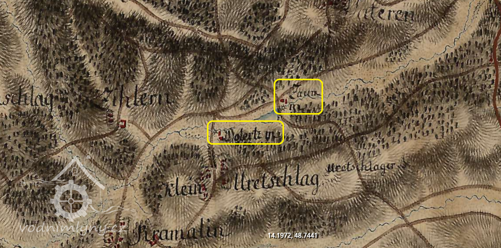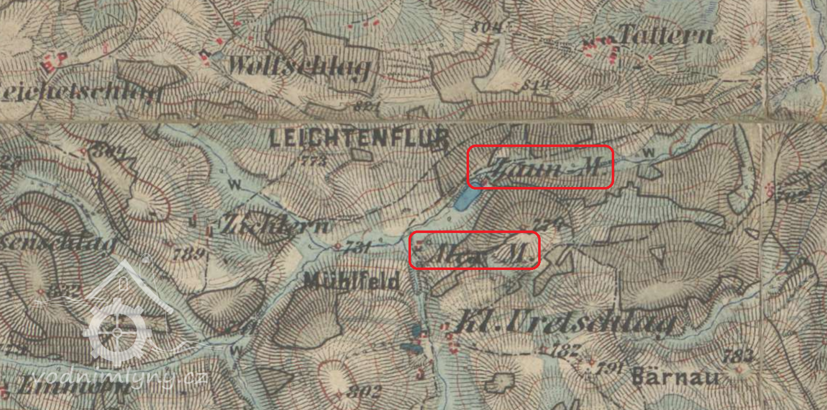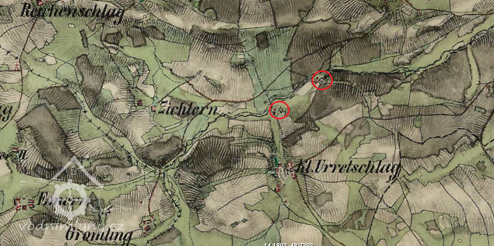 Mlýn na potoce Čertice, stavení č.p. 11, patřící rodině Reitinger.