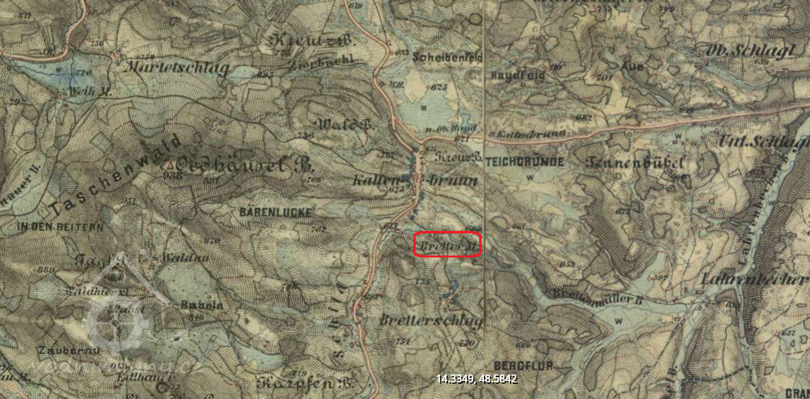 Mlýn a pila na potoce Bystrá , stavení čp.10, patřící rodu Dräxler.