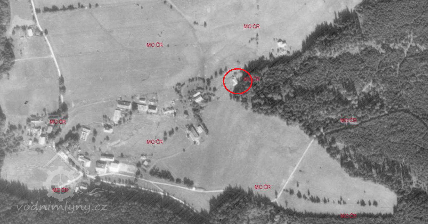 Na Medvědím potoce stával mlýn , stavení č.p.12 , patřící rodině Hruza.
