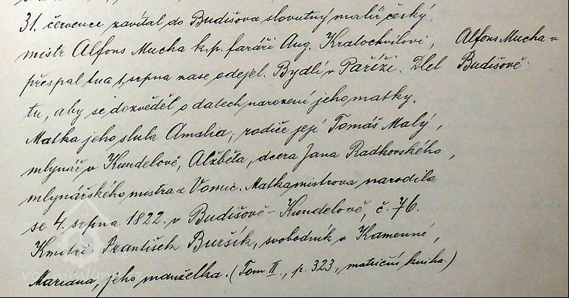 O své babičce Amálii se zmiňuje i Jiří Mucha v životopisném díle „Alfons Mucha“.