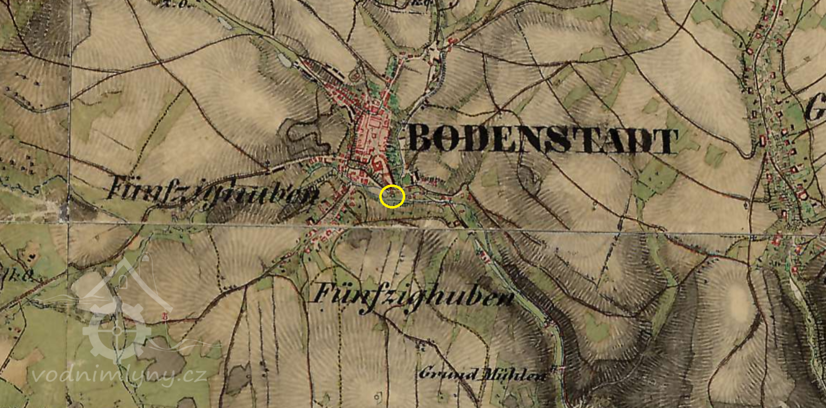 Jednalo se o vodní mlýn s Francisovou turbínou na potoce Veličce. Majiteli byli Rudolf Stanzl, Adolf Stanovski (majitel firmy Stanovski v Odrách), za druhé světové války pak Jan Czech, jemuž byl mlýn kvůli německé národnosti konfiskován.