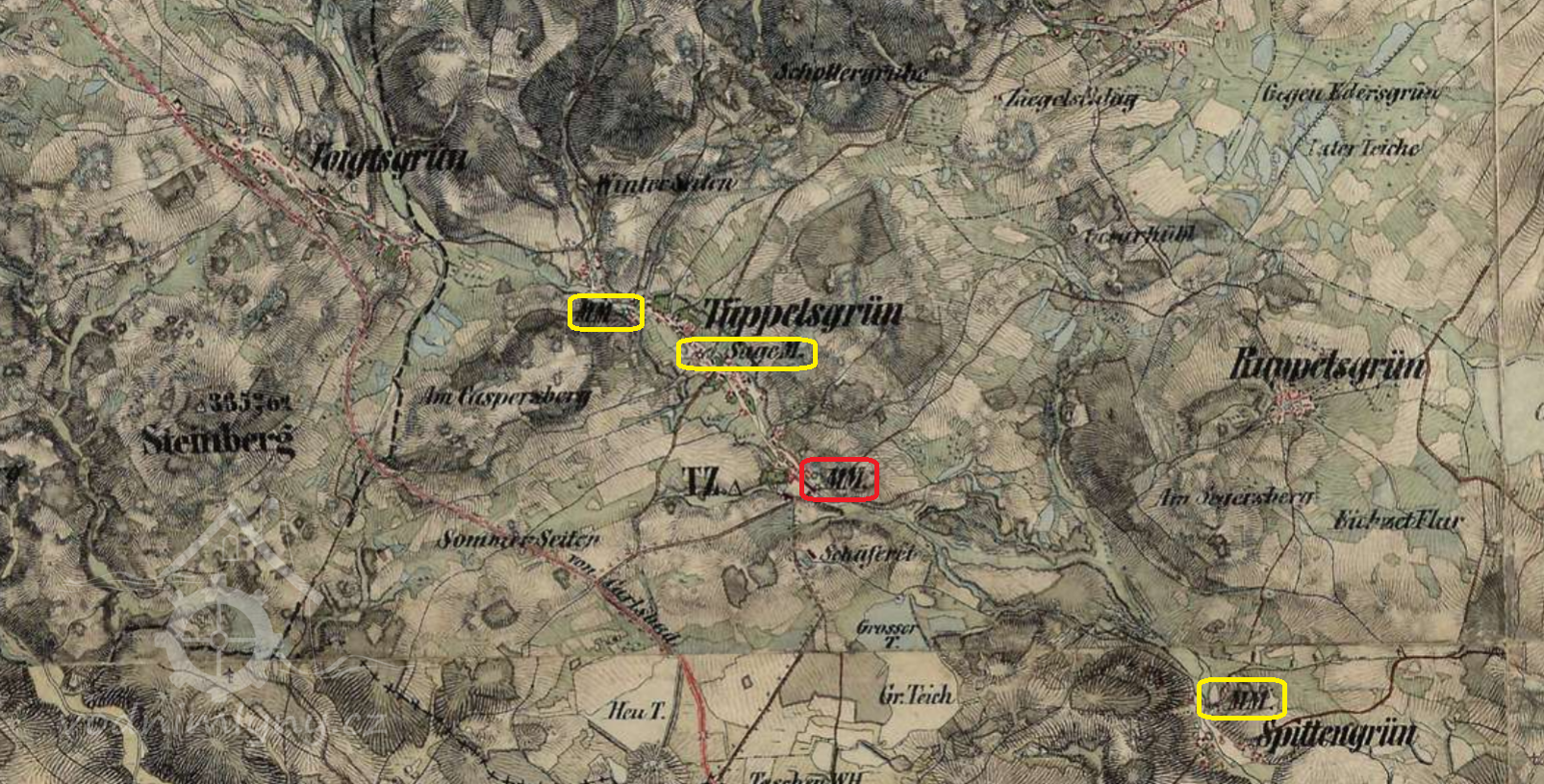 voda ke kolům přiváděna a odváděna podzemním kanálem, není zachycen na katastrální mapě