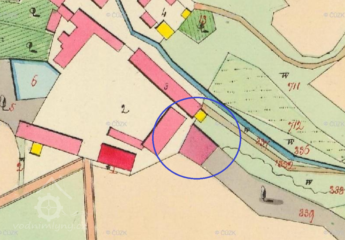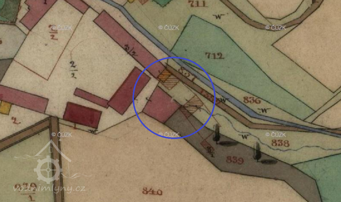 Popis1930: 1 kolo na svrchní vodu, hltnost 0,133 m3/s, spád 4,73 m, výkon 6 HP