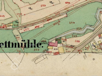 Mlýn s pilou v sousedství Humrovského mlýna připomínaný k roku 1512, 1920 postavena o něco výše nová mlýnice. Stará roubená mlýnice v roce 1993 zbořena a nová přestavěna na obytný dům.