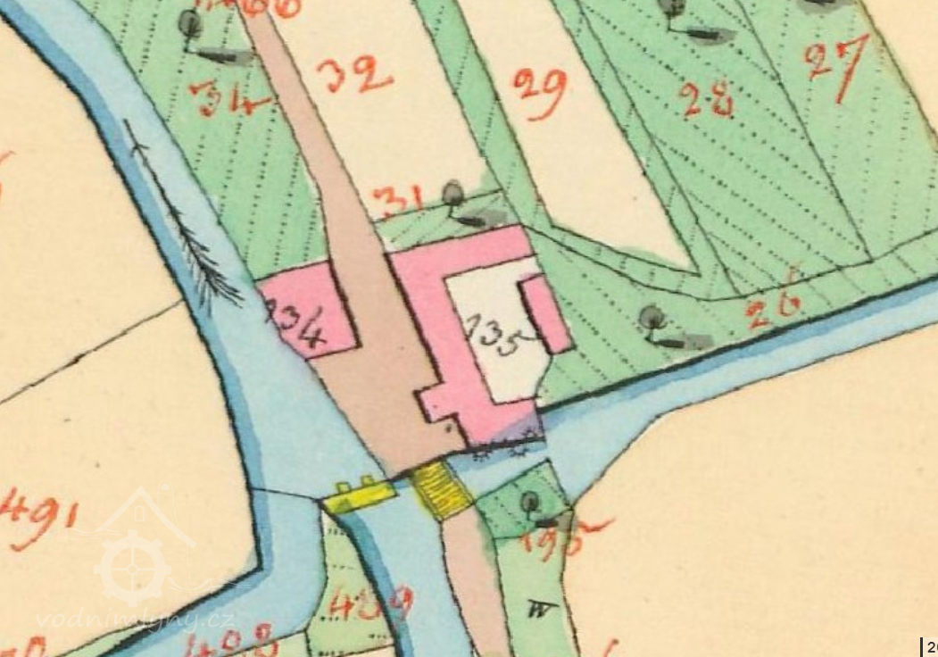 Popis1930: 1 turbína Francis, hltnost 0,5 m3/s, spád 2 m, výkon 10,5 HP