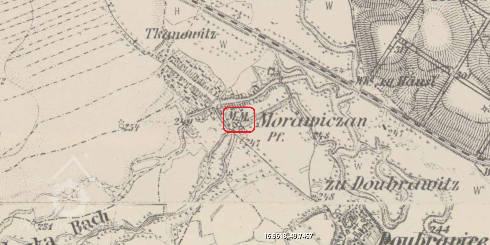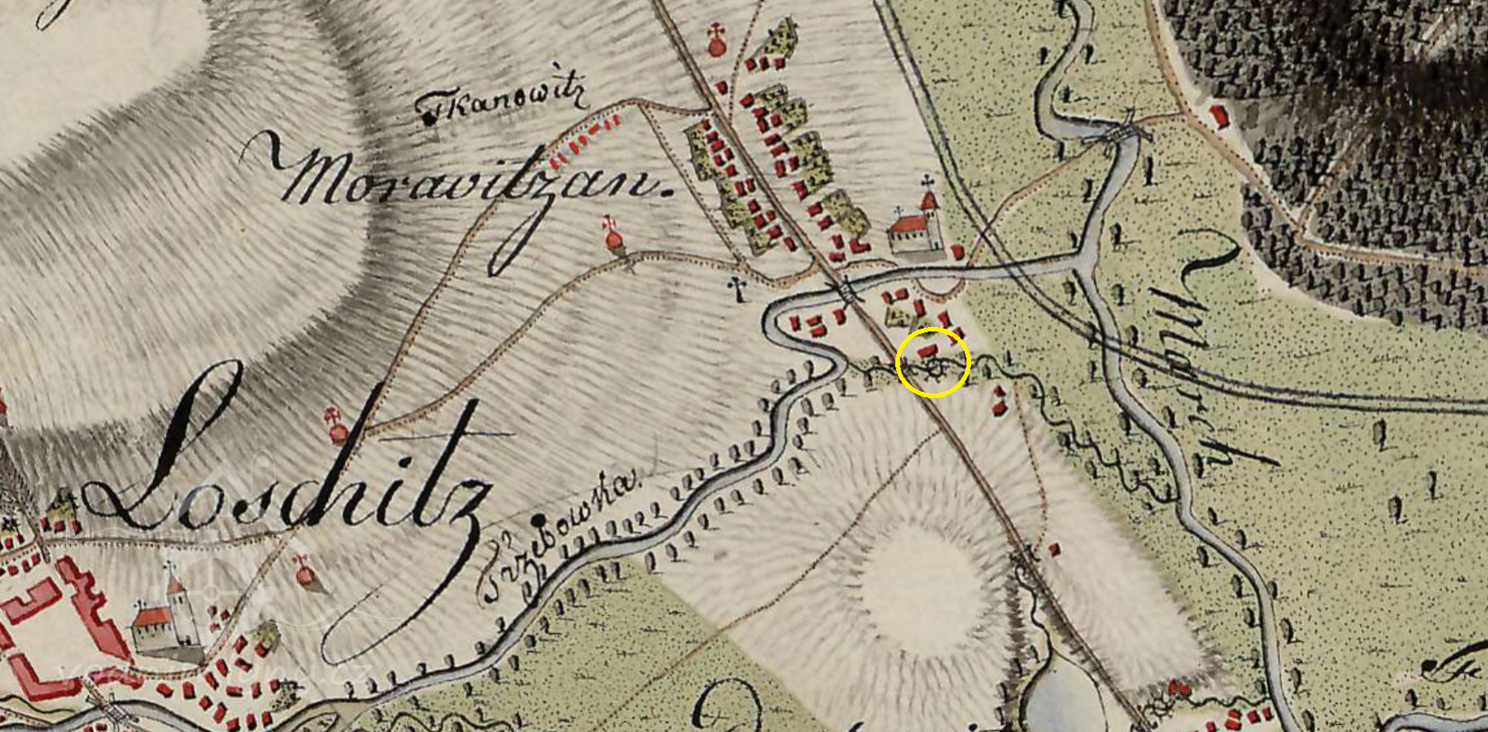 700 m jižně od kostela sv. Jiří v Moravičanech