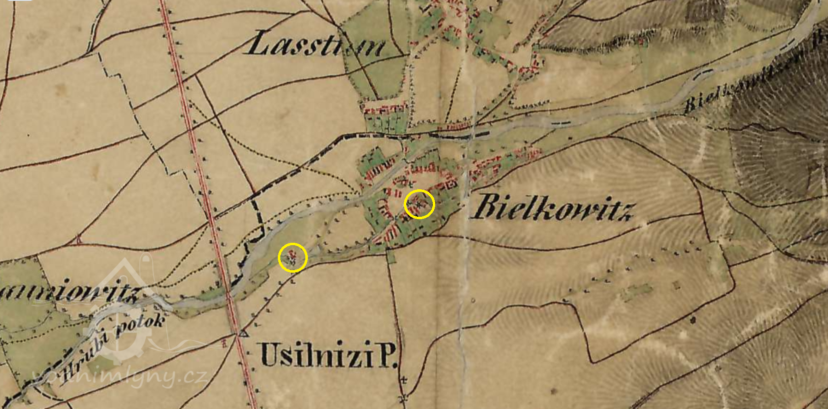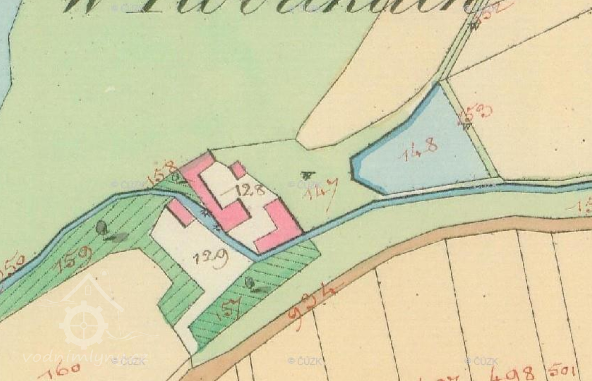 Popis1930: 2 kola na svrchní vodu, 2x hltnost 0,154 m3/s, spád 4 m, výkon 5,25 HP