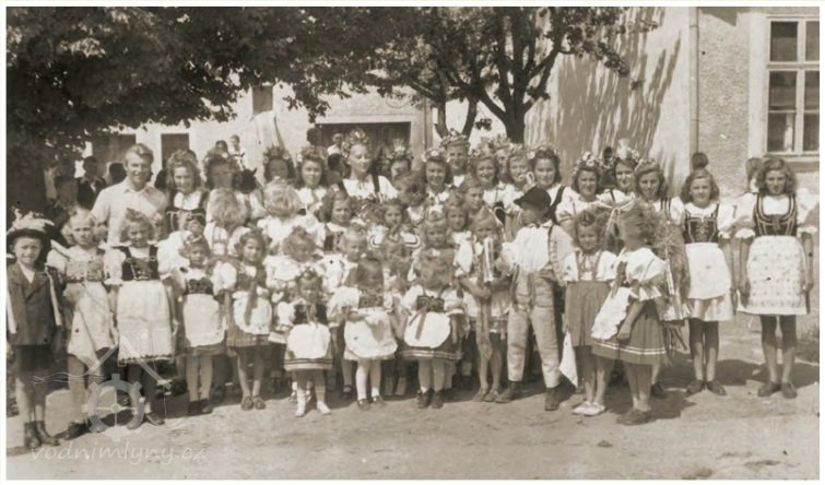 U mlýna býval sraz pro prvomájové průvody (průvod končil na konci obce směrem k Újezdu).