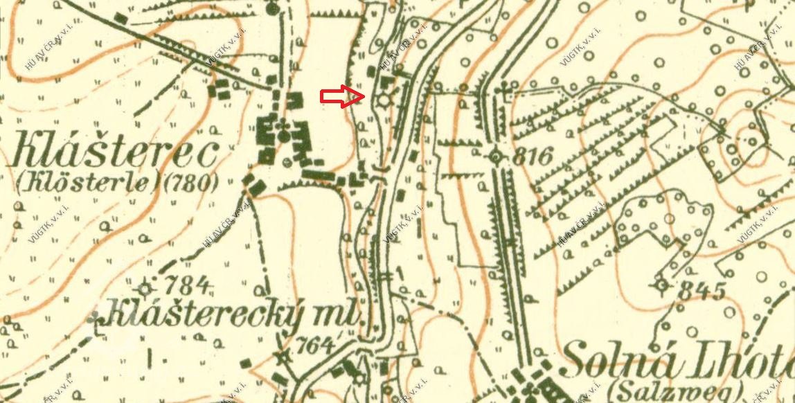 Hranici mezi Kláštercem a Solnou Lhotou tvoří Arnoštský potok. Všechno, co leží na jeho pravém břehu, náleží ke vsi Solná Lhota. Z tohoto důvodu patřil i Schererův mlýn k Solné Lhotě a měl její číslo popisné 32. Stával tam, kde se údolí počíná zužovat, pod posledními staveními “Kaloppen”. Mlýn byl velmi pěkně zařízen. Zrno bylo nejprve drceno, pak drhnuto, 33 % tvořila výražková mouka, 33 % chlebová mouka, odpad tak 3 až 4 %, zbytek otruby.