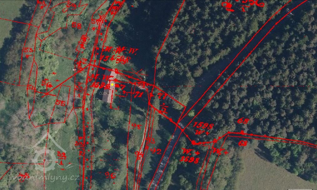 Voda k mlýnskému provozu byla odváděna z Arnoštského potoka (Ernstberger Bach). Dřevěný žlab přiváděl vodu ke dvěma mlýnským kolům se 4,5 a 6 metry v průměru, oběma na vrchní vodu. Ty vyráběly i elektrický proud pro vlastní potřebu domu, pro řezačky i kruhovou pilu.