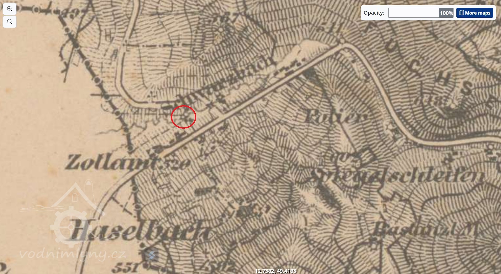 Novější mlýn, poslední na Černém potoku před bavorskou hranicí. Zaniklý v pohraničním pásmu.