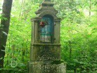 Po roce 1990 byla obnovena odsunutými Němci u zbořeného domu Lhotka čp. 2 žulová kaplička s okénkem. Nad okénkem je kamenný nápis „Josef Panger“ a dole vročení „1853“. V okénku je kresba statku Lhotka čp. 2 s německým připomenutím, že statku se říkalo „ U Pangerů“ a statek měl více než třicet hektarů zemědělské půdy. Žulová kaplička bez křížku má výšku 210 cm. V srpnu 2011 byla neznámým pachatelem odcizena výše popsaná kamenná výklenková kaplička.