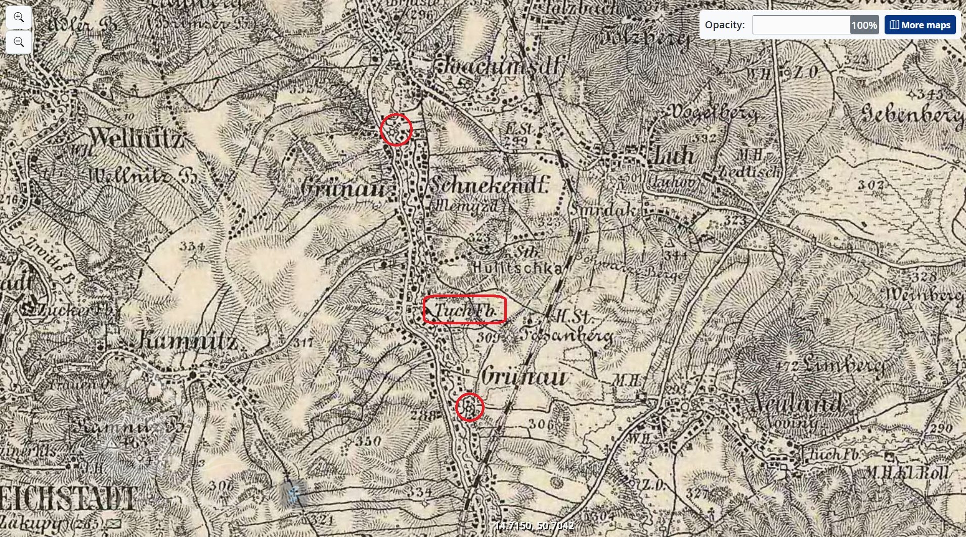 1,6 km severně od kostela Navštívení P. Marire ve Velkém Grunově