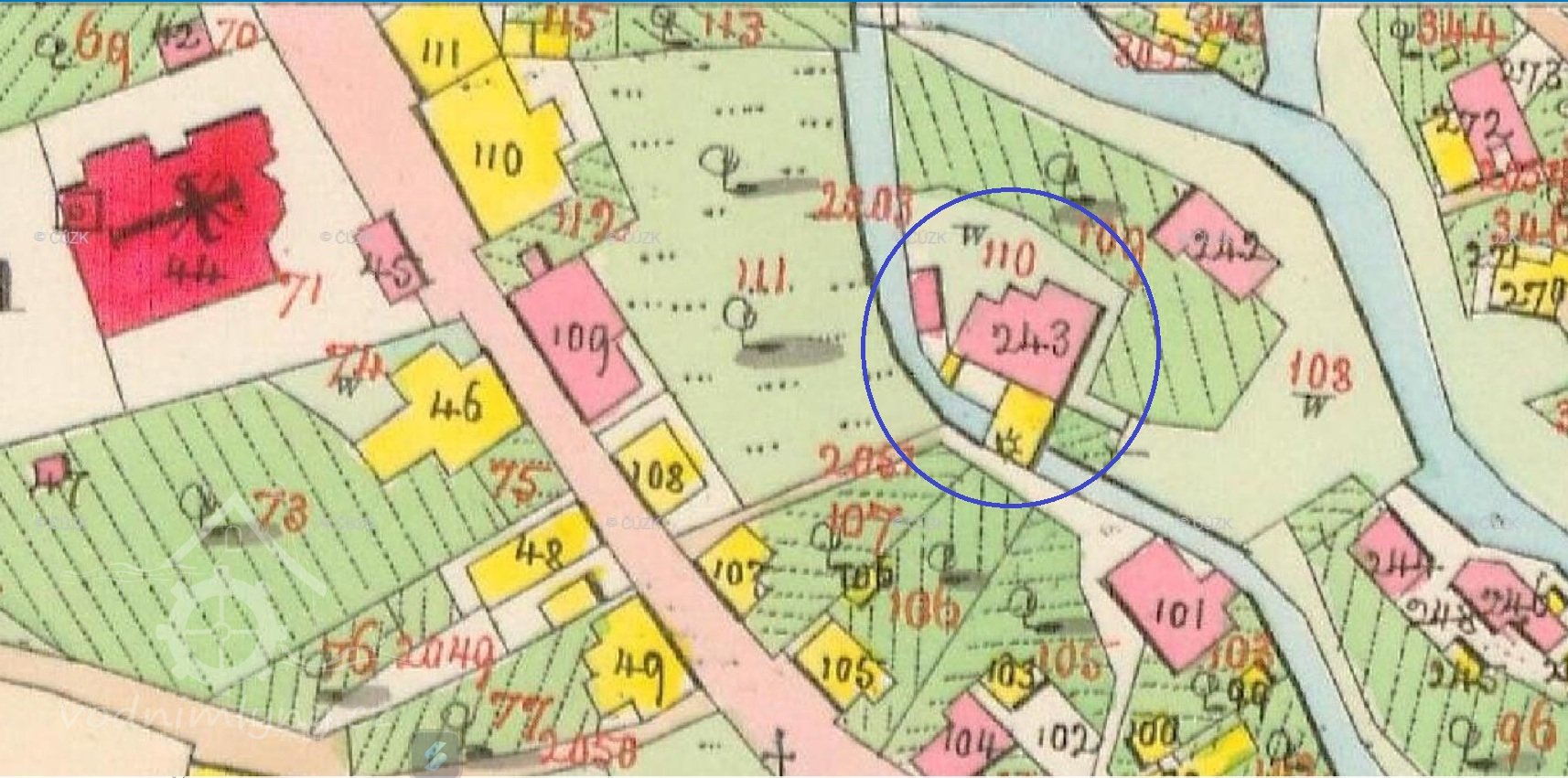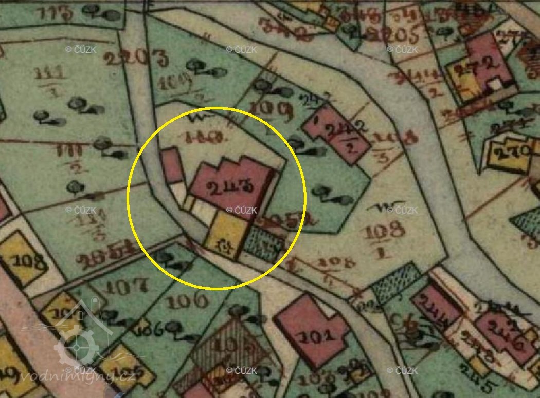 Popis1930: 1 kolo na spodní vodu, hltnost 1,4 m3/s, spád 1 m, výkon 5,6 HP