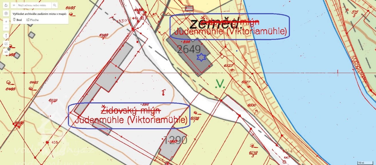 Spálený, Sieberův, Židovský mlýn, mlýn Victoria; Untere Neumühle, Judenmühle