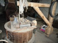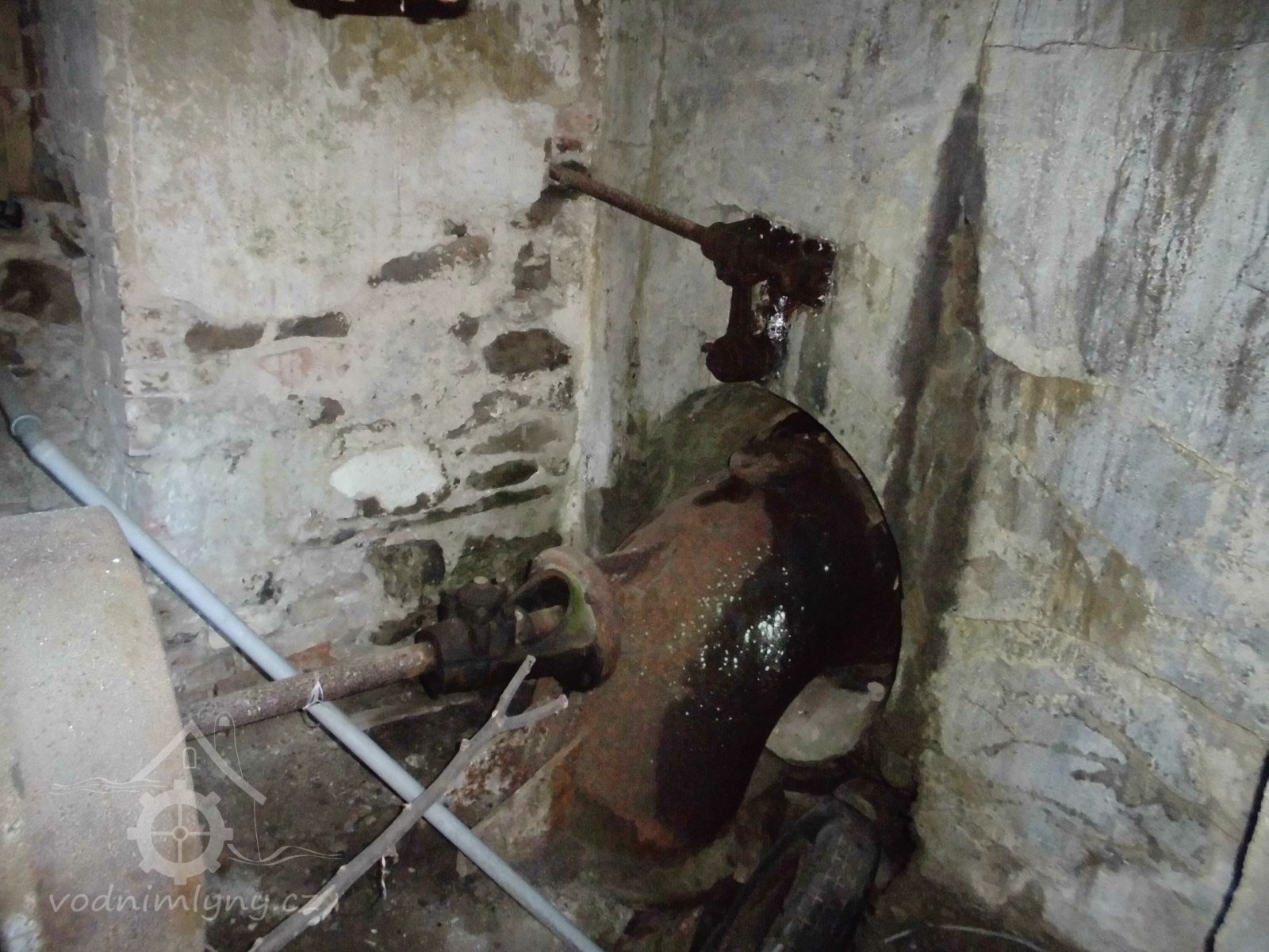 transmise od turbíny, 2014, © Veselý, (Prvky na obrázku: Turbína, transmise, řemenice, převody)
