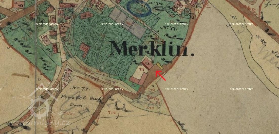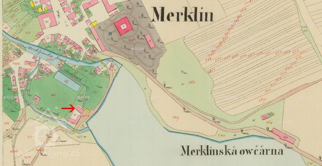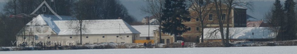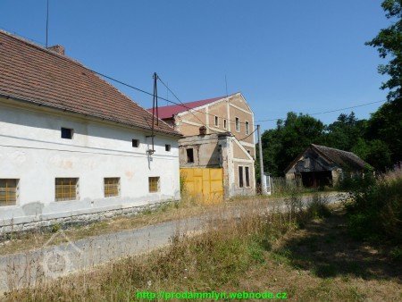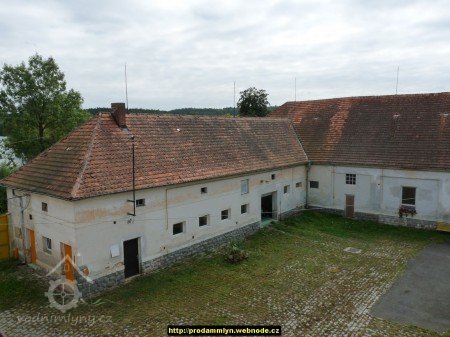 Rozlehlý areál mlýna, obytného domu a hospodářských budov se nachází blízko velkého rybníka.
