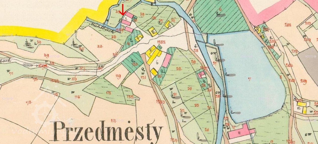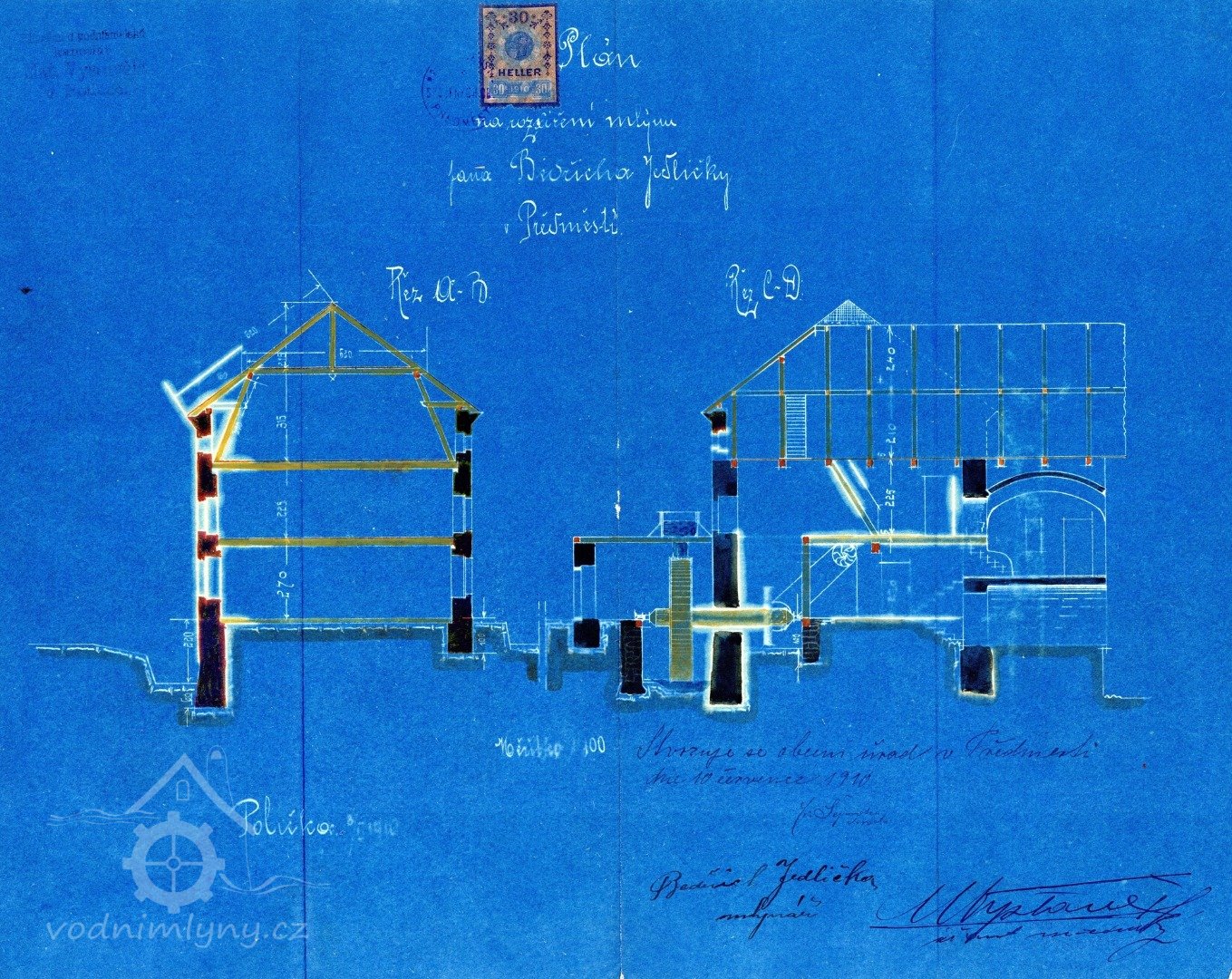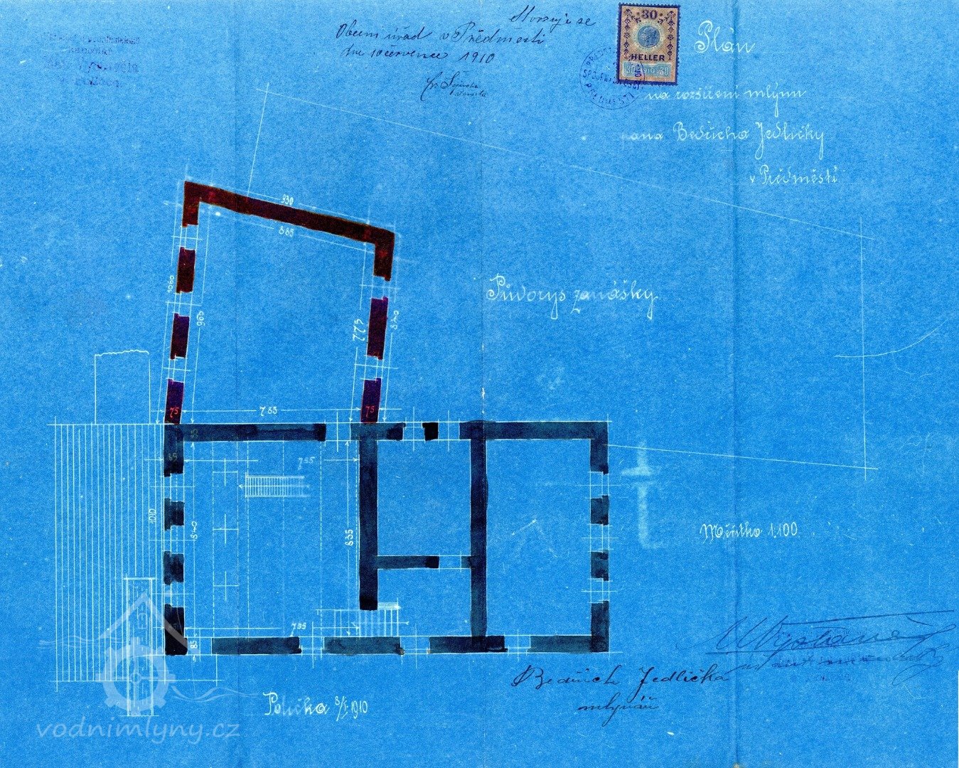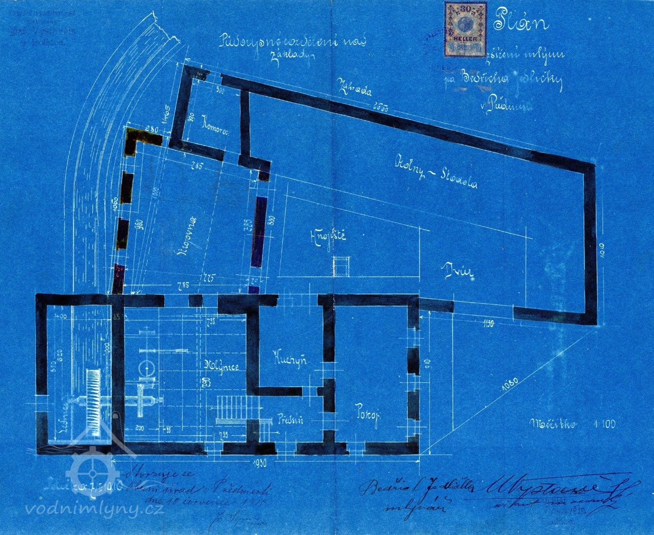 PopisV roce 1930 měl mlýn dvě kola na svrchní vodu, každé s průtokem 0.262 m3/s, spádem 4.31 m a výkonem 9.75 k.
