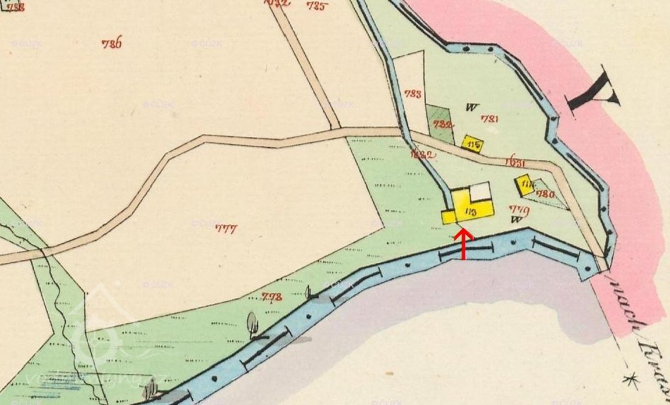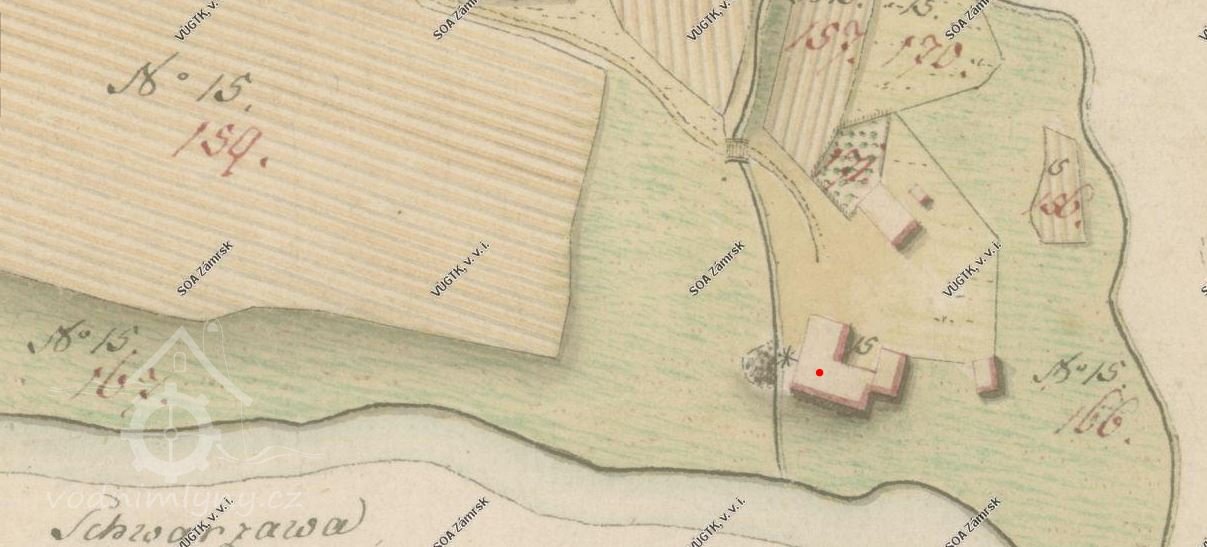 Mlýn je zde zachycen již na mapě I. vojenského mapování.