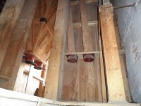transmise v podstřeší, 2013, © Veselý, (Prvky na obrázku: transmise, řemenice, převody)