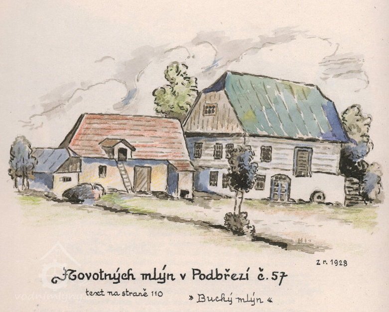 Původně panský mlýn založený údajně v roce 1443, nazvaný po dočasném držiteli skaleckého statku Jiřím Buckém z Varnsdorfu (1532-1534). 1738 odprodán do soukromého držení, často měnil majitele, 1925 přistavěna tkalcovna, 1943 mlýn zbořen (budova tkalcovny však dosud stojí, i když Klempera píše, že byla v roce 1954 rovněž zbořena). Ačkoliv se nalézá v těsném sousedství Chábor (součást Dobrušky), náleží katastrem k Podbřezí.