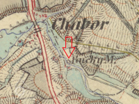 Splav stržen povodní 1946, zůstal pouze odpadový kanál do Podchlumí