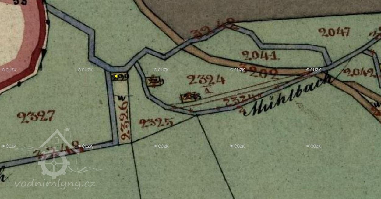 Na mapách z let 1862 a 1877 je mlýn zakreslen se třemi budovami.