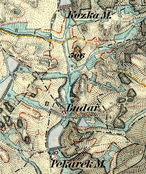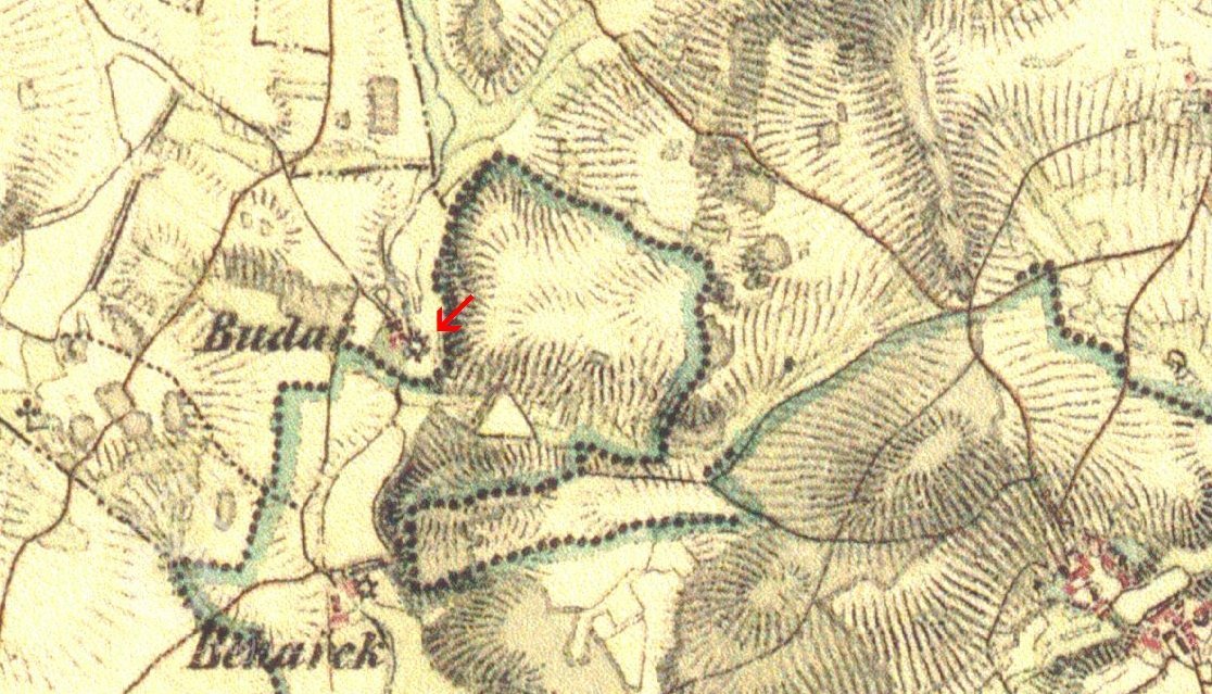 Protože k bývalému mlýnu patřilo málo pozemků (v urbáři z roku 1618 a dalších je uvedeno „Ze mlejna Hrušovskýho osedlý bez potahu jeden”), Mikuláš Hadáček přikoupil v roce 1638 od sedláka Jana Šejdy z Kovářova kus pozemku na „pahrbku u Hruškovského rybníka”. Podle urbářů platili držitelé samoty Budař z tohoto rybníka od roku 1642 ročně 30 grošů míšeňských. Tento velký rybník, který již zanikl, ale dodnes z něho zůstala zachována mohutná hráz v sousedství usedlosti, patřil zřejmě k bývalému mlýnu. Z něj byla voda přiváděna dřevěným korytem (vantroky) na mlýnské kolo. Rybník byl ještě zakreslen na mapě I. vojenského mapování z let 1764–1768. Mapa stabilního katastru z roku 1830 však již rybník nezobrazuje. Přesto na mapě II. vojenského mapování z let 1836–1852 je samota Budař stále označena symbolem mlýna.