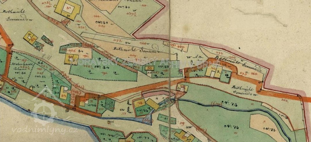 První čp. mlýna bylo 78, po přečíslování v roce 1890 měl mlýn čp. 95.