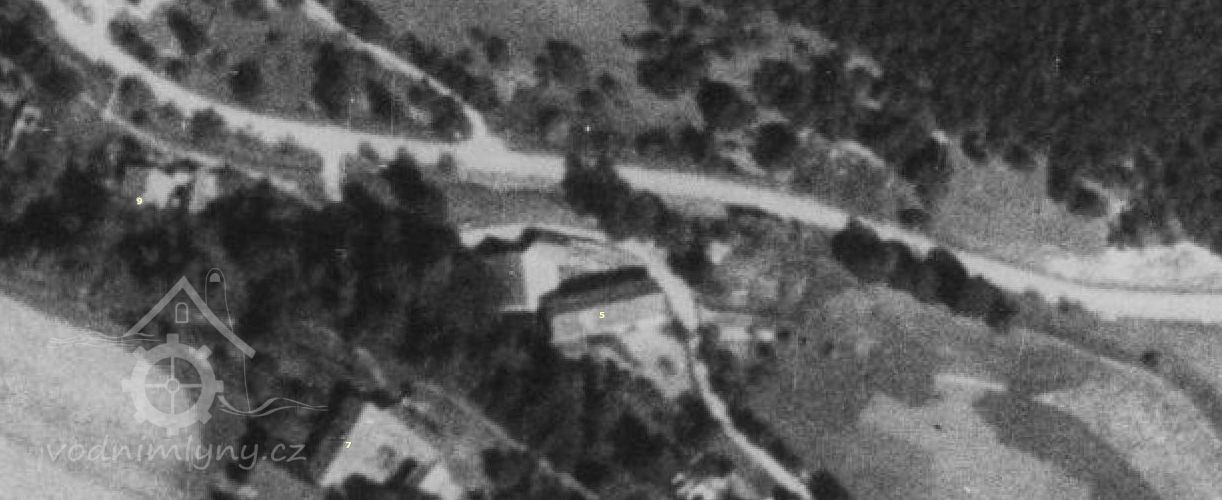 PopisV roce 1930 mlýn pohání kolo na svrchní vodu s průtokem 0.063 m3/s, spádem 6.05 m o výkonu 3.05 k.