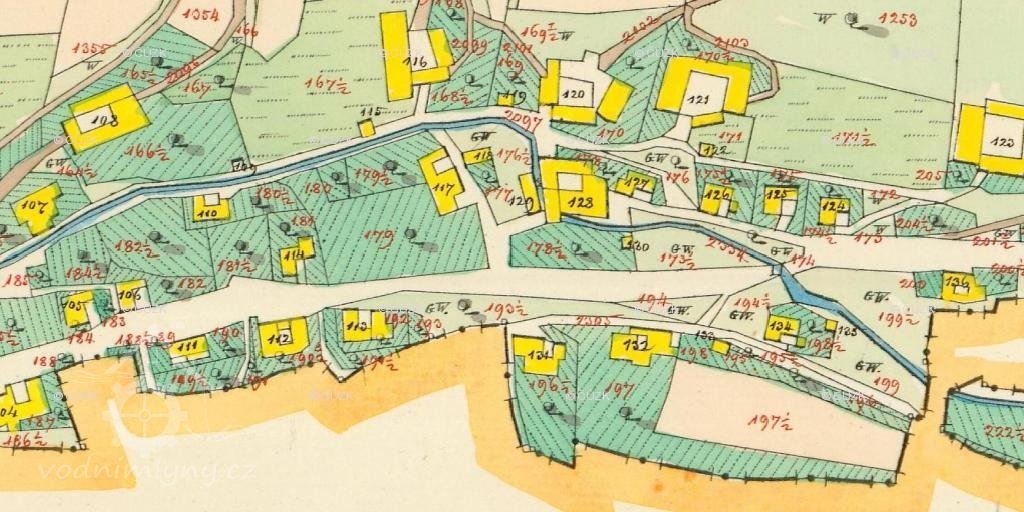 Jeden z nedochovaných mlýnů v obci, na jehož místě nebyl postavený žádný nový dům a parcela z části slouží jako zahrada.