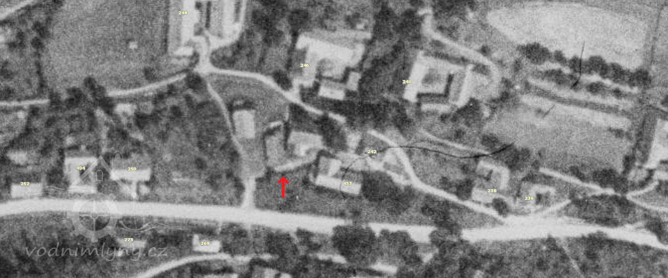 Dle leteckého snímkování mlýn existoval nejméně do roku 1954.