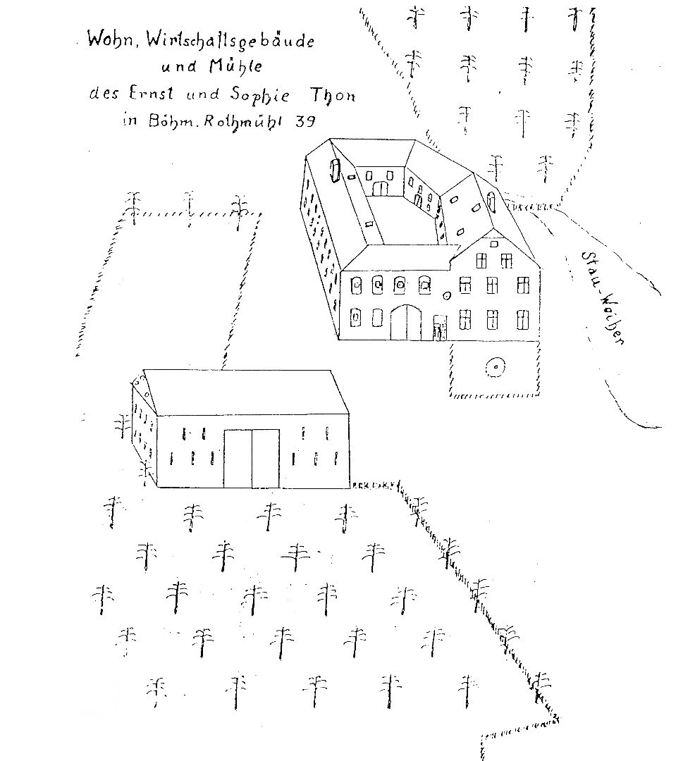 V roce 1890 mlýn vlastní Johann a Juliana Thon.