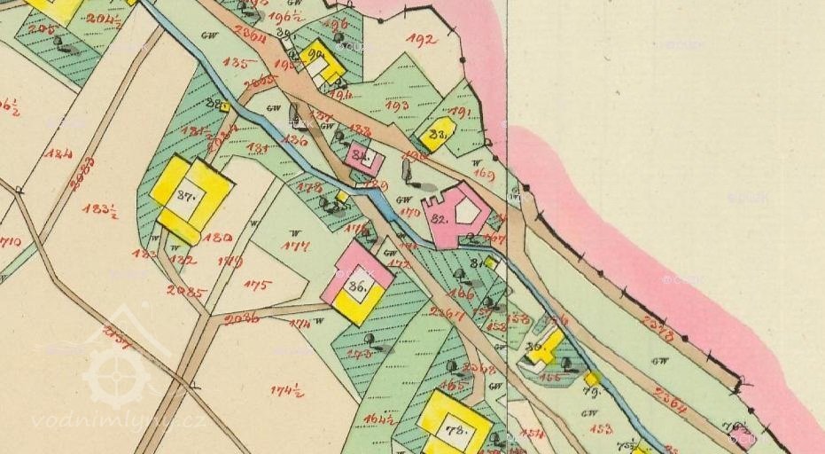 První čp. mlýna bylo 33, po přečíslování v roce 1890 měl mlýn čp. 39.