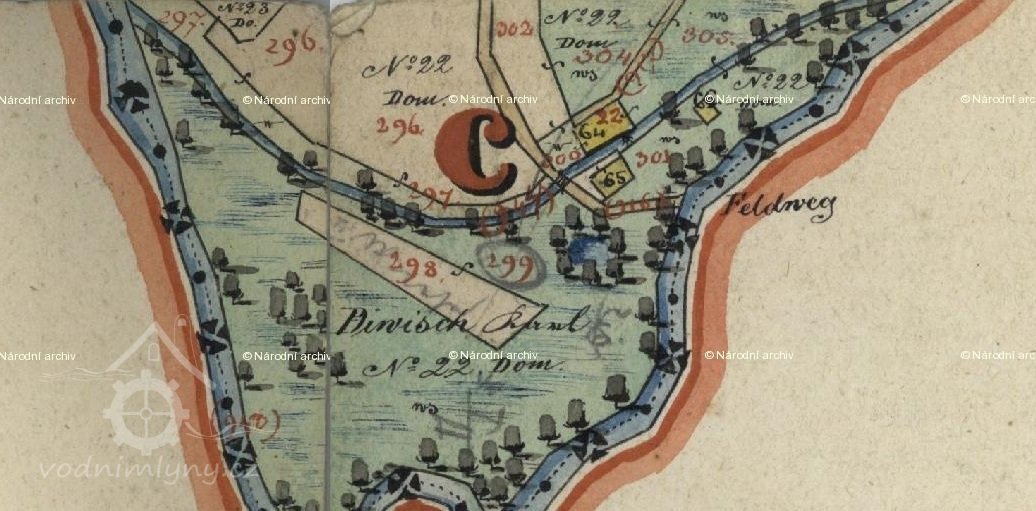 Seznam ministerstva financí v obci uvádí mlýn v čp. 27, obec ale nebyla přečíslovaná a čp. 27 je dům na kopci daleko od řeky a mlýn to rozhodně nebyl, proto se zřejmě jedná o překlep a jedná se o čp. 22.