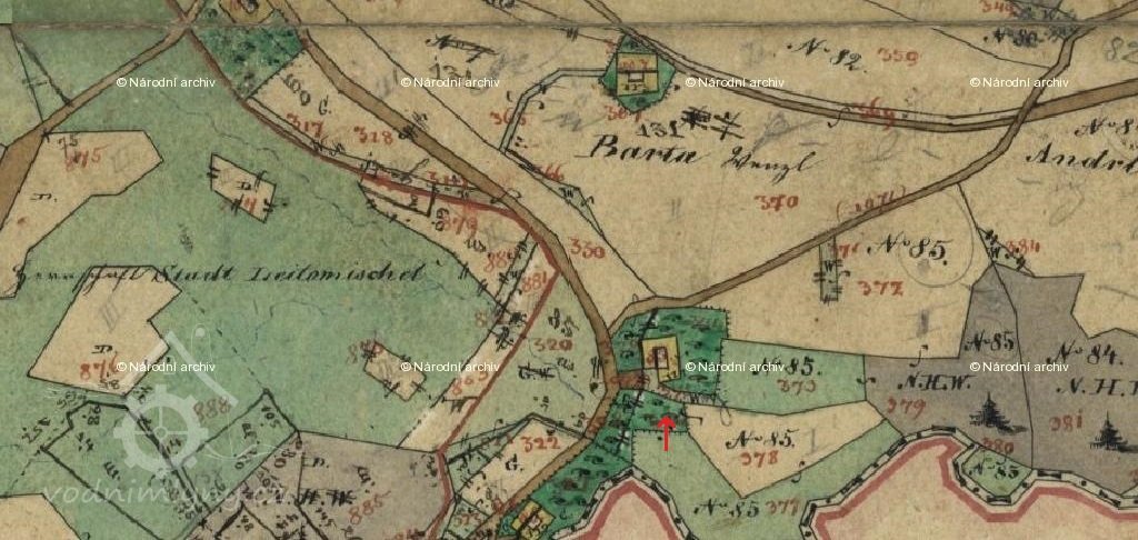 V Kamenném Sedlišti, první vsi na Desince, která spadala pod zámecké panství, se na počátku 18. století nacházely dva mlýny. Na malém mlýně o jednom složení provozoval svou živnost mlynář Ondřej Jiruška. Z mlýna platil ročně 9 zl 20 kr.