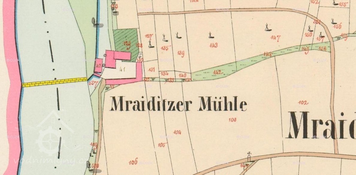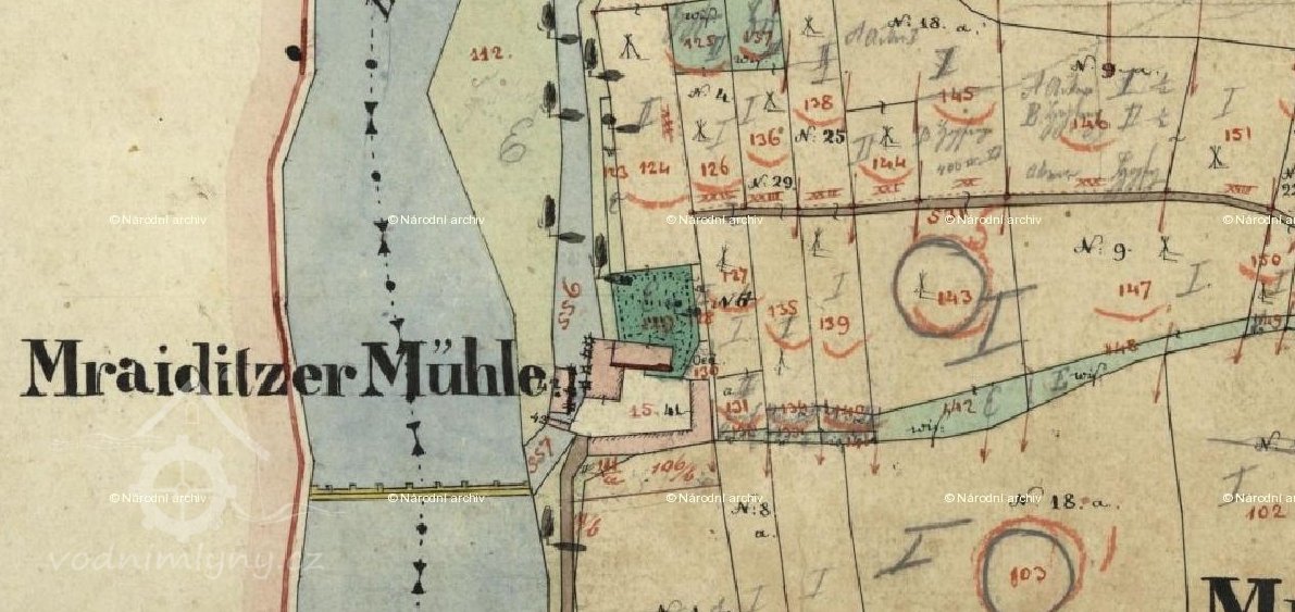 Mlýn v Mradicích patřící rodině Jiráskových z Loun. V současné době se zde již mouka nemele. Funkční je zde MVE.