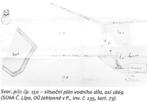 Pila založena 1793 na okraji rozsáhlých lesních pozemků v sz cípu obce majiteli svorského mlýna čp. 43, tamější mlynáři byli zároveň držiteli této pily.
