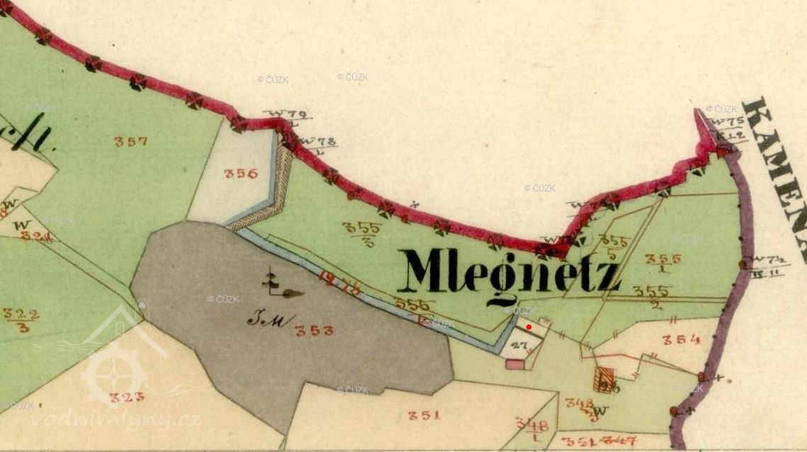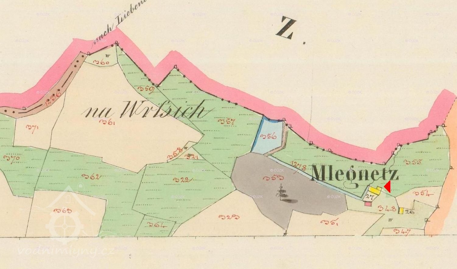 Popis1930: 1 kolo na svrchní vodu, hltnost 0,096 m3/s, spád 5,45 m, výkon 4,53 HP