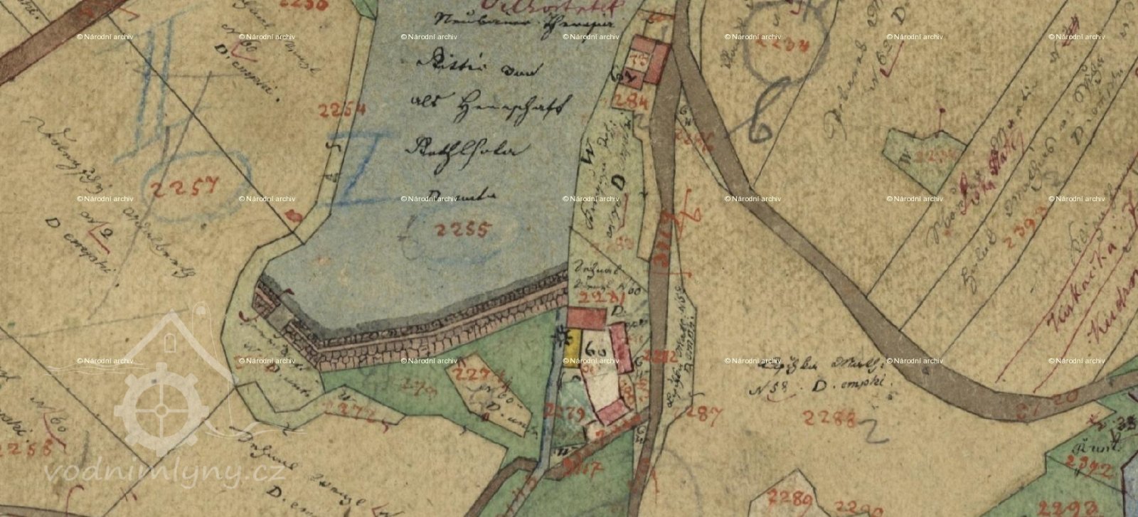 V kartonu č. 213 a ve Vodní knize č. 1 na str. 89 najdeme několik zajímavých dokladů o mlýnu: