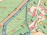Na přiložené mapě 1. jos. mapování je horní mlýn jednoznačně nad přítokem Vážanského potoku i Plchův mostek k Medlovicím je v záběru. První budova statku vpravo s velkým nádvořím je nynější mlýn č.35 - i situačně a vede tam od Váž. potoka strouha, ale nemá znak kola a 3 poslední velký statek či dvůr za vodou je později č.18-(17)-dnes vše zastavěno a tam údajně u potoku měl být dolní mlýn, či v obci v nájmu-pana Petra Nýče z Awertá, majitele Stříbrnského svob. dvoru - viz přil. registr. Za potokem k Buchlovu to bylo pod správou lovecké obce.12 svob. lovců a soudců loveckého práva na hradě Buchlově, kdy si volili starostu a předsedajícího soudu ze svého středu. Lovecká obec a dvůr byli v těsném sousedství ,ale v r.1611 samostatné správní jednotky? Přímo sousedi dvoru byli rody Masařů a Blanařů, majitelé jatek. Masaři platili jak Lovecké obci, tak část i majiteli dvoru.