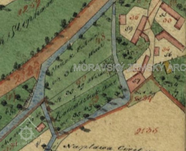 P Slavík připustil, že dle pamětí místních byly nejstarší mlýny údajně dva - jeden níže v obci a ukazoval k přítoku potoka pod Skaly do Medlovského - cca u č.17 a horní nad přítokem Vážanského potoka do Medlovského(u samoty dříve Tomanů) a příjezd k mlýnu byl po mostku-jediném v obci - v r.1611 uváděn jak Plchův mostek-viz 1. Jos. mapování. Údajně oba mlýny zaniklé povodní, proto bylo bezpečnější přivádět vodu umělým kanálem k č.35 a shodou okolností i na pozemku pradědy z č.1. Za mého mládí se část přívodu rozorala a tok potoka výše se přemístil blíže k silnici.(Vážanský potok zůstal cca ve svém korytě s přítokem do Medlovského, ale již bez strouhy k budově dnešního mlýna-viz 1 jos. mapování)