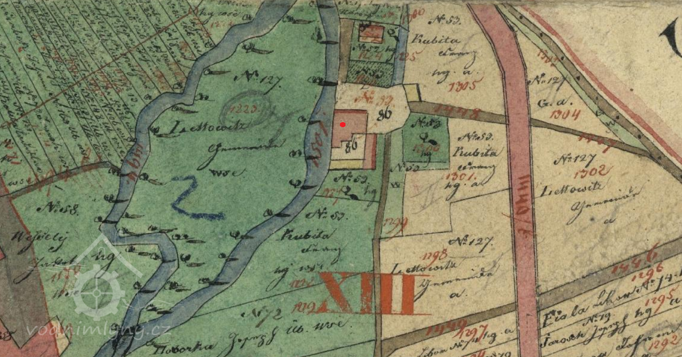 V roce 1826 vlastní mlýn František Kubita, který však z nějakého důvodu není v mapě uveden jako mlynář, mlýn má čp. 53.