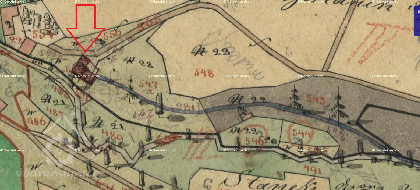 Popis1930_ 1 kolo na svrchní vodu, hltnost 1,04 m3/s, spád 4,8 m, výkon 4,84 HP
