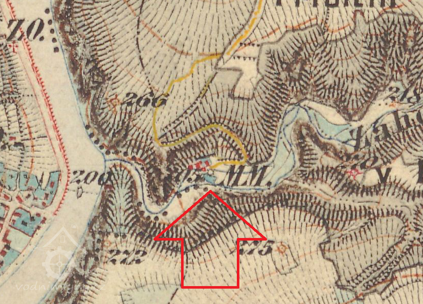 Náhon ze Záhořanského potoka původně veden nejprve do rybníka a teprve odtud na kolo.